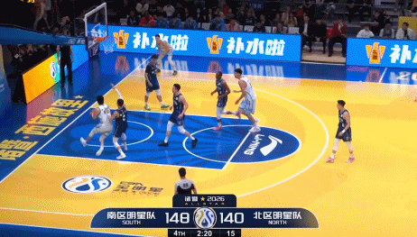 本场比赛的决战时刻,北区明星队一度追至个位数,随着徐杰连中2记关键三分,再次建立2位数的领先优势,杀死比赛悬念。