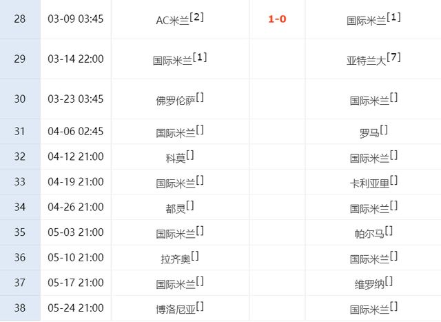 1-0!意甲争冠生变:米兰德比双杀+差榜首7分,国米后10轮5场恶战